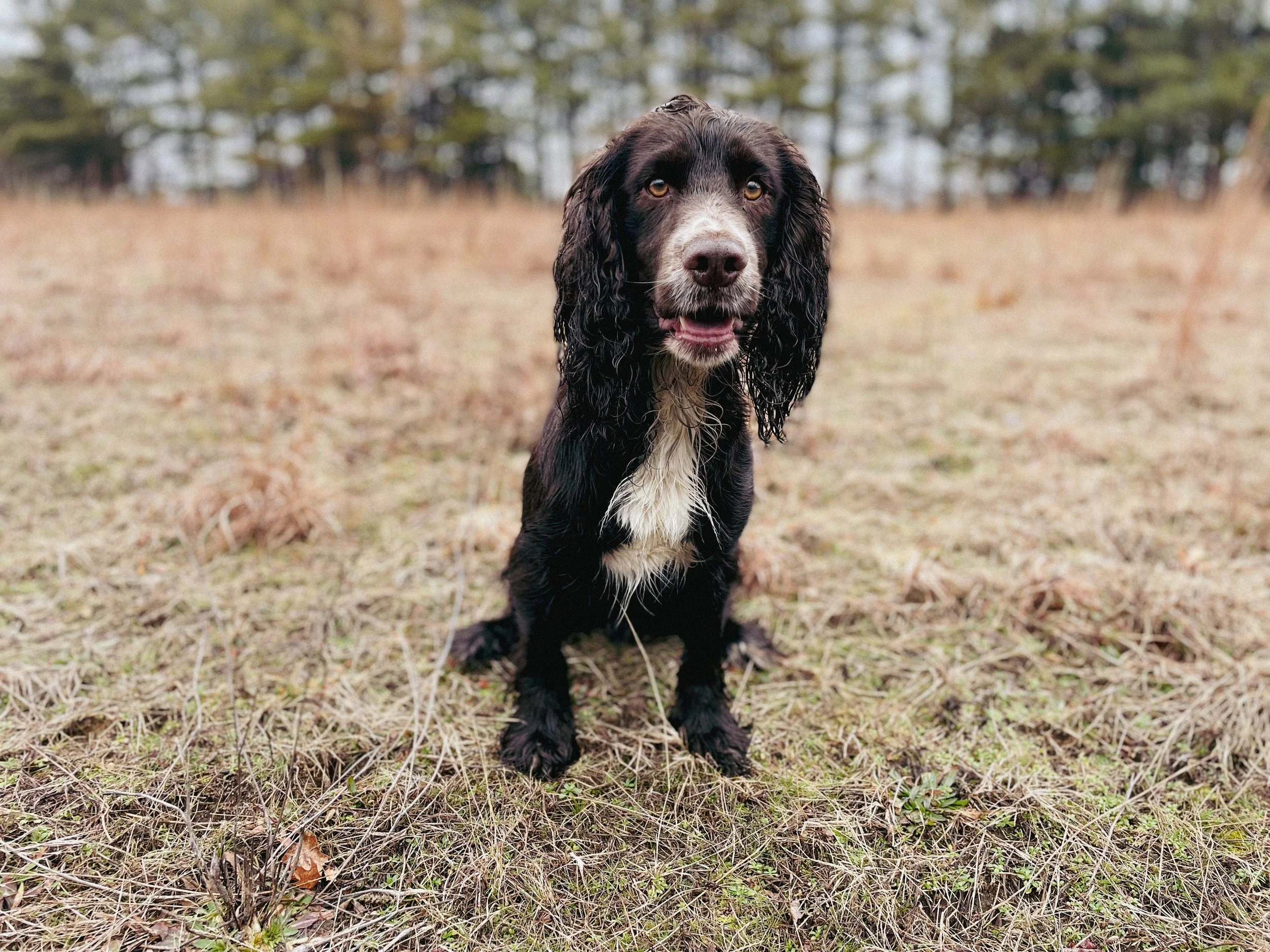 We imported Panther in Fall of 2022 from Peter Jones’ famed Maesydderwen kennels in southwest Wales. He’s been in our training program for almost a year and is showing lots of promise. Sired by Maesydderwen Sirius and out of Etakiel Cerin, the same dam who produced FC Maesydderwen Sindar. Panther is a friendly cocker both compact and strong. He is conditioned to the gun, delivers his birds to hand, and has been trained to the whistle. He would make an excellent gentlemen’s shooting companion. He is social and outgoing and loves affection. (SOLD. Please check back for other available dogs)